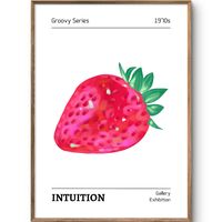 תמונה ייחודית מתוך קטגוריית וינטג' ורטרו של קולקציית NEXTGEN, המציגה איור אמנותי של תות בסגנון שנות ה-70. התמונה משלבת צבעים חמים ותחושה נוסטלגית, מושלמת ליצירת סט מותאם אישית שמוסיף סטייל ייחודי לעיצוב הבית.