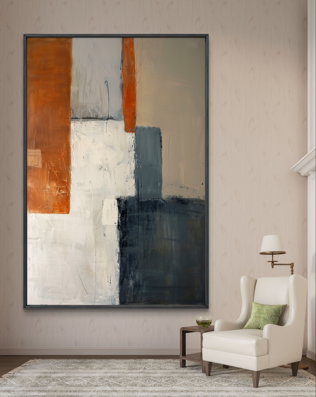 היצירה "גאומטריה בנויה"תמונת הקנבס הזו, עם חתימתה של צבעים נייטרליים ואלמנטים גאומטריים. ביצירה, משטחים גדולים של תחומים אורבניים כמו חום חלודה, תכלת עמוק, לבן ושחור מתפרקים לבלוקים שמחוללים תחושת מרחב ועומק. מרקם הציור מוסיף מימד ואינטרס למראה הכללי, יוצר נוף עירוני מודרני במרחב הביתי.