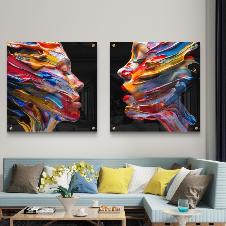 "נפשות צבעוניות" - זוג תמונות זכוכית לסלון/חדר שינה דגם - C99132